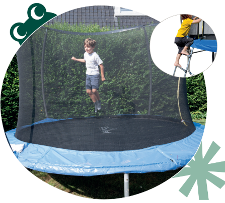 Les trampolines SOULET sont équipés d'un filet de protection souple et résistant, pour permettre aux enfants de jouer dans une zone sécuritaire. Ce filet est agréable au toucher, d'une hauteur suffisante pour faire de grands sauts sans risque de chute, et d'une fermeture solide pour permettre de nombreuses ouvertures et fermetures pour une utilisation simple de nos enfants.